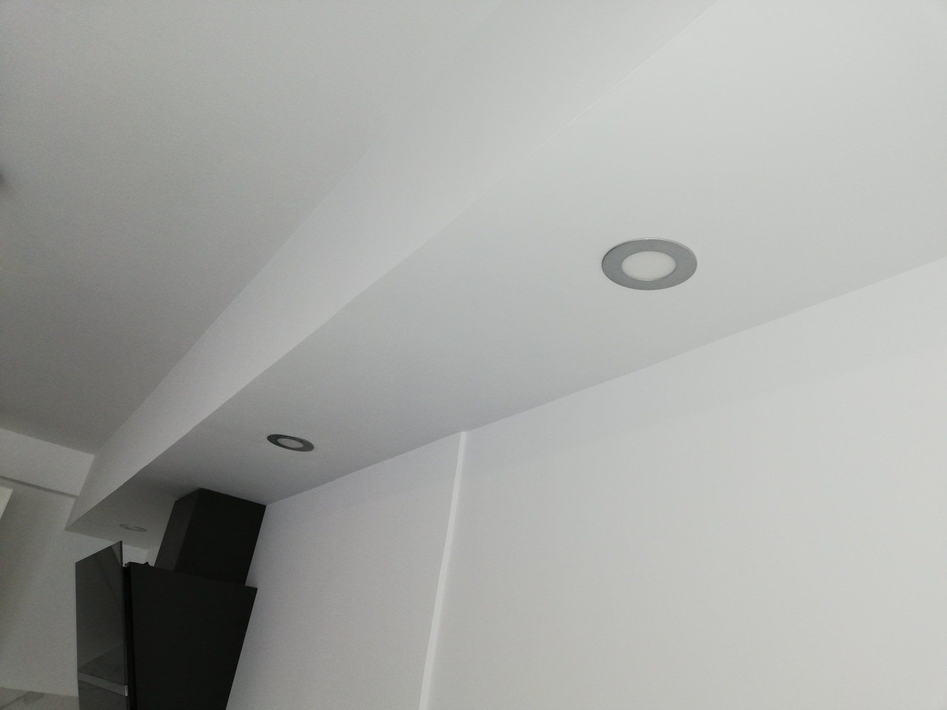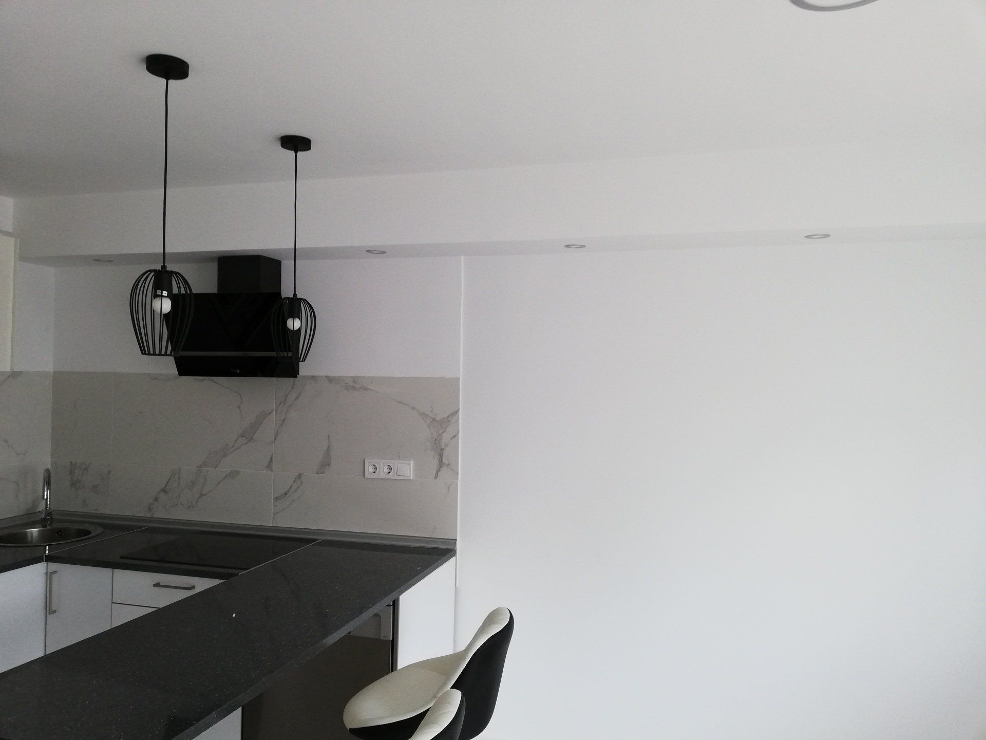 Trabajos de pladur en techo para colocar iluminación y sonido. Colocación de suelo de baldosas porcelánicas imitación madera para dar calidez al espacio, alisado y pintura de paredes.