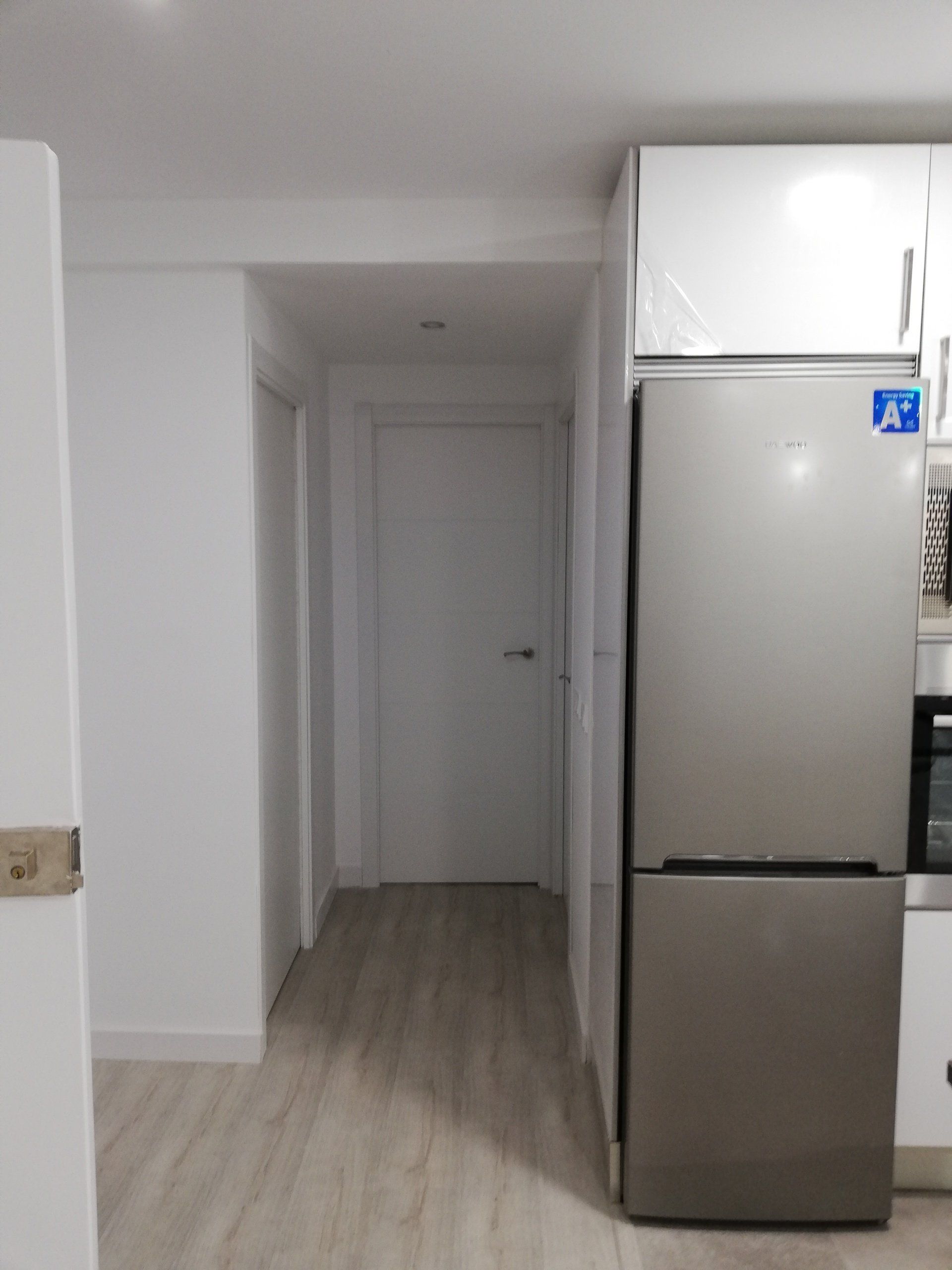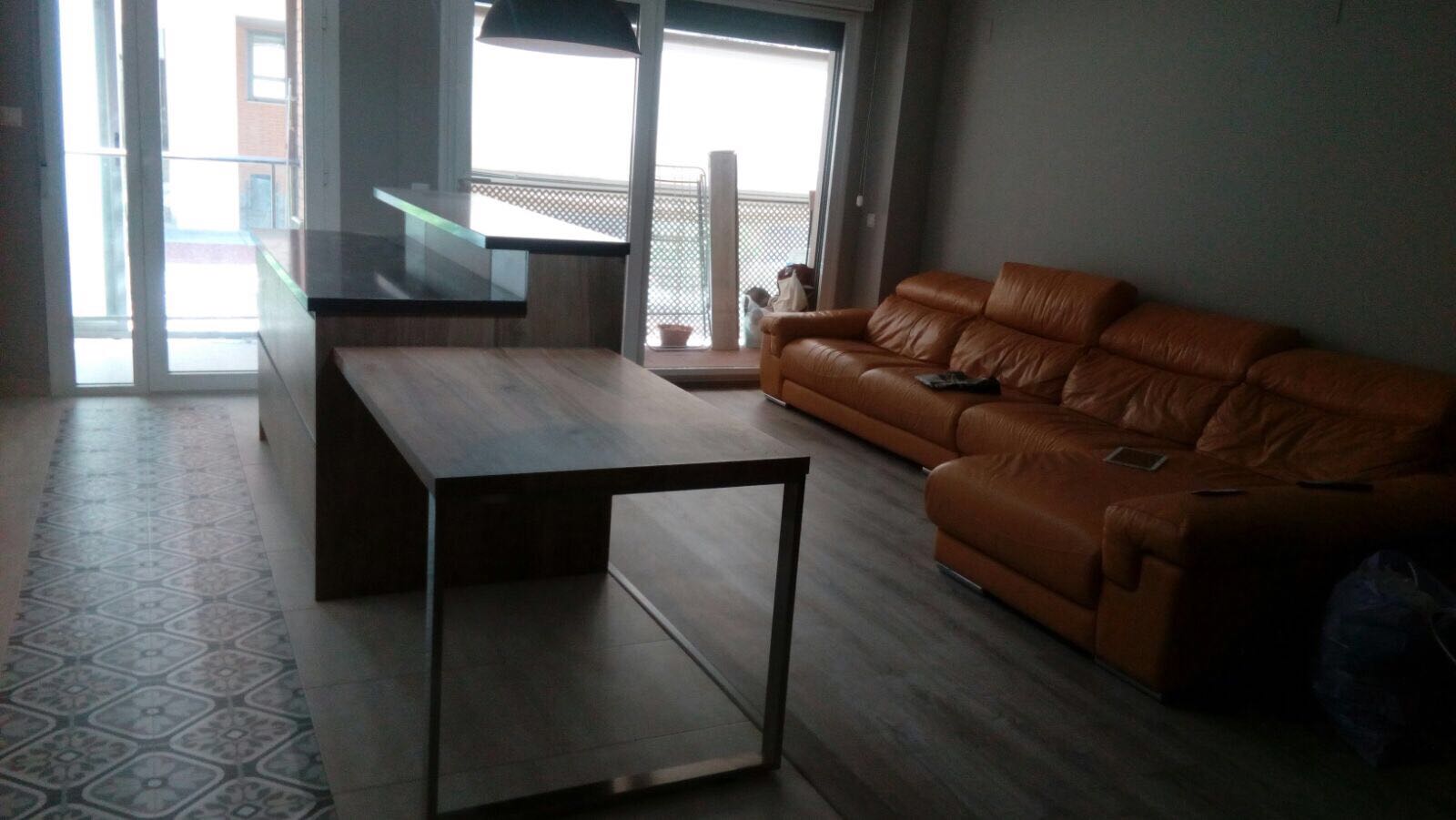 Manteniendo la distribución se renovaron todas las instalaciones, instalación eléctrica, instalación de fontanería, colocación de tarima flotante, cambio de cerramientos exteriores fabricados en PVC, mobiliario de Cocina, renovación de baño y alicatados.
