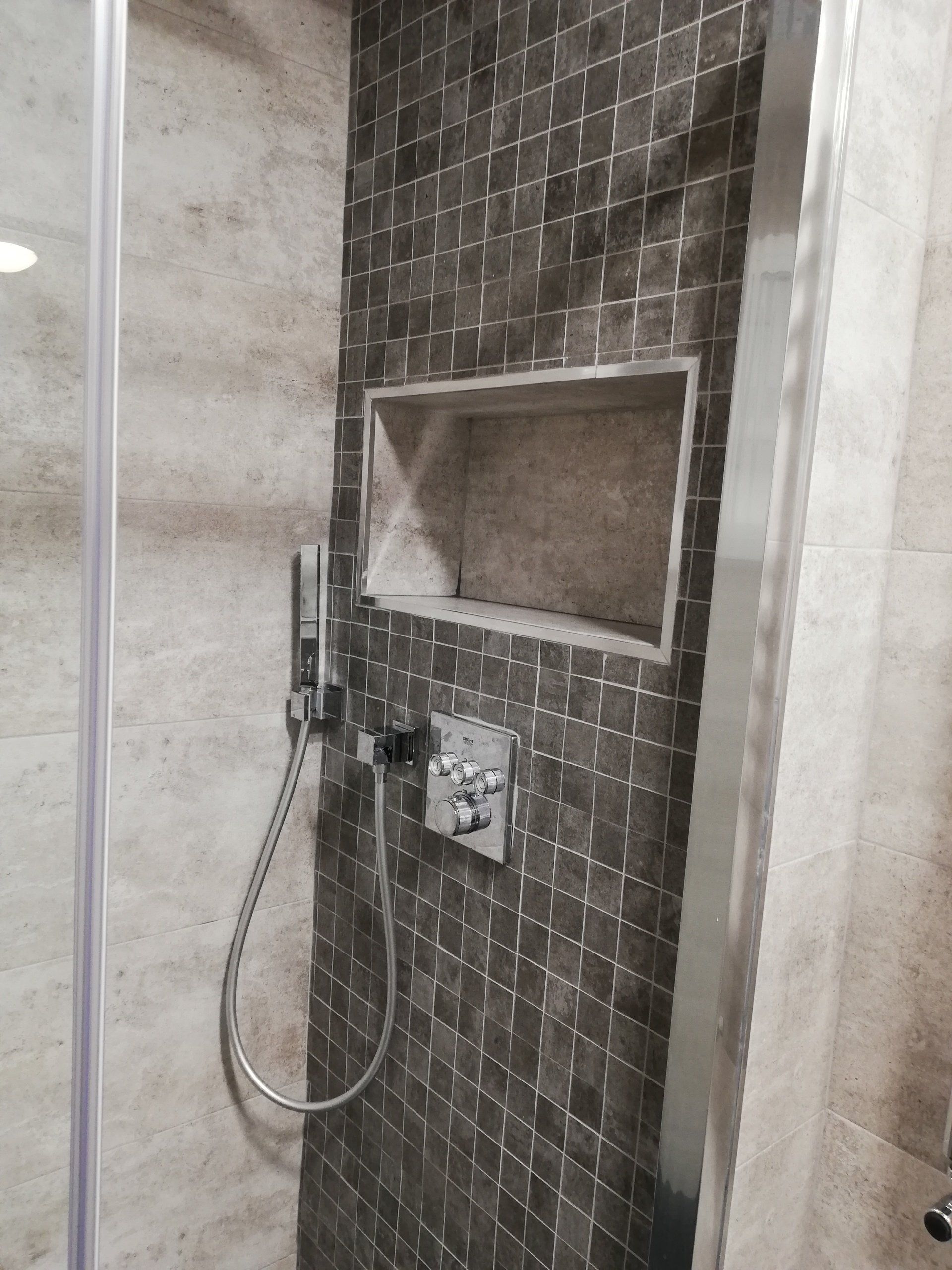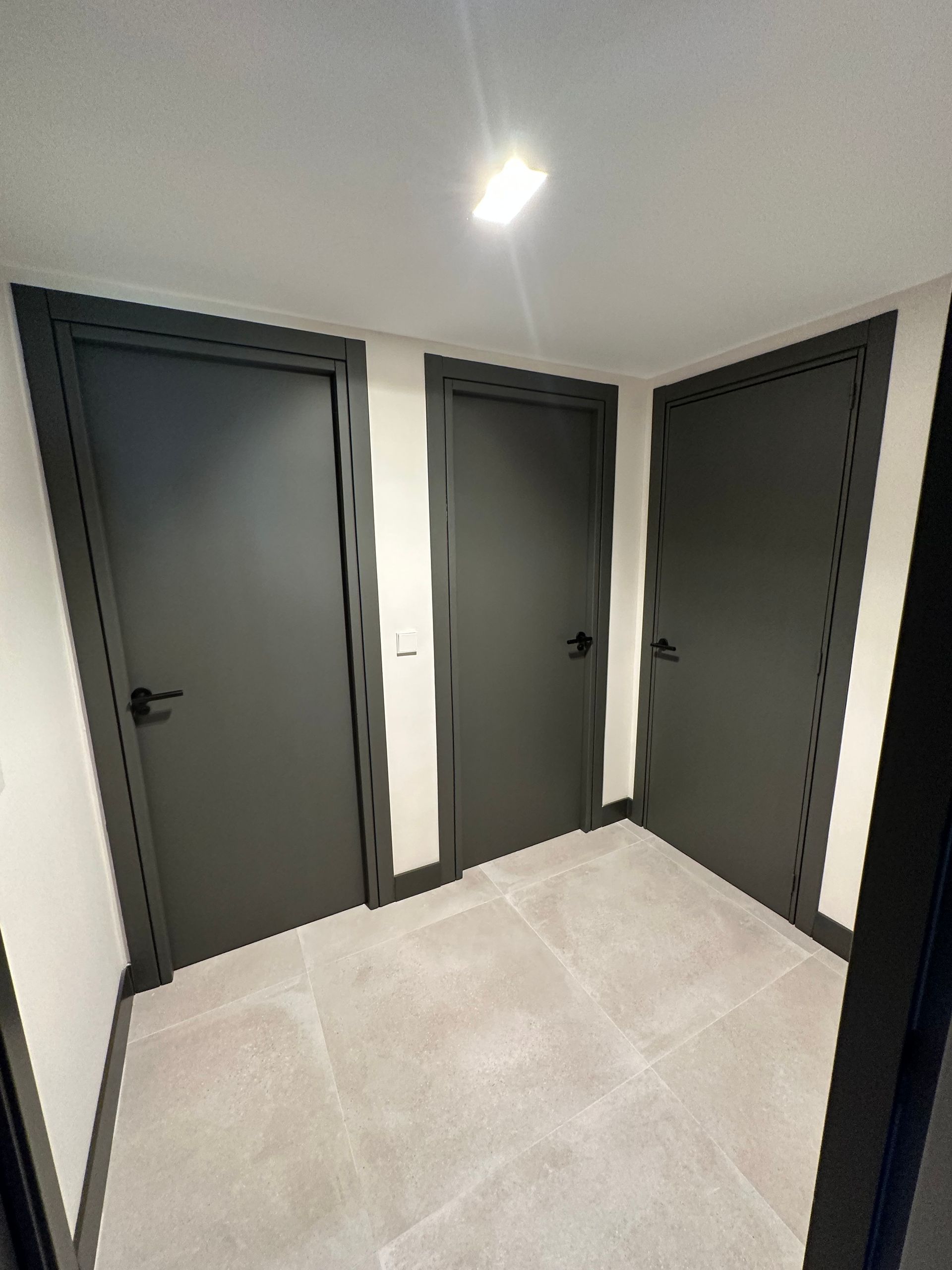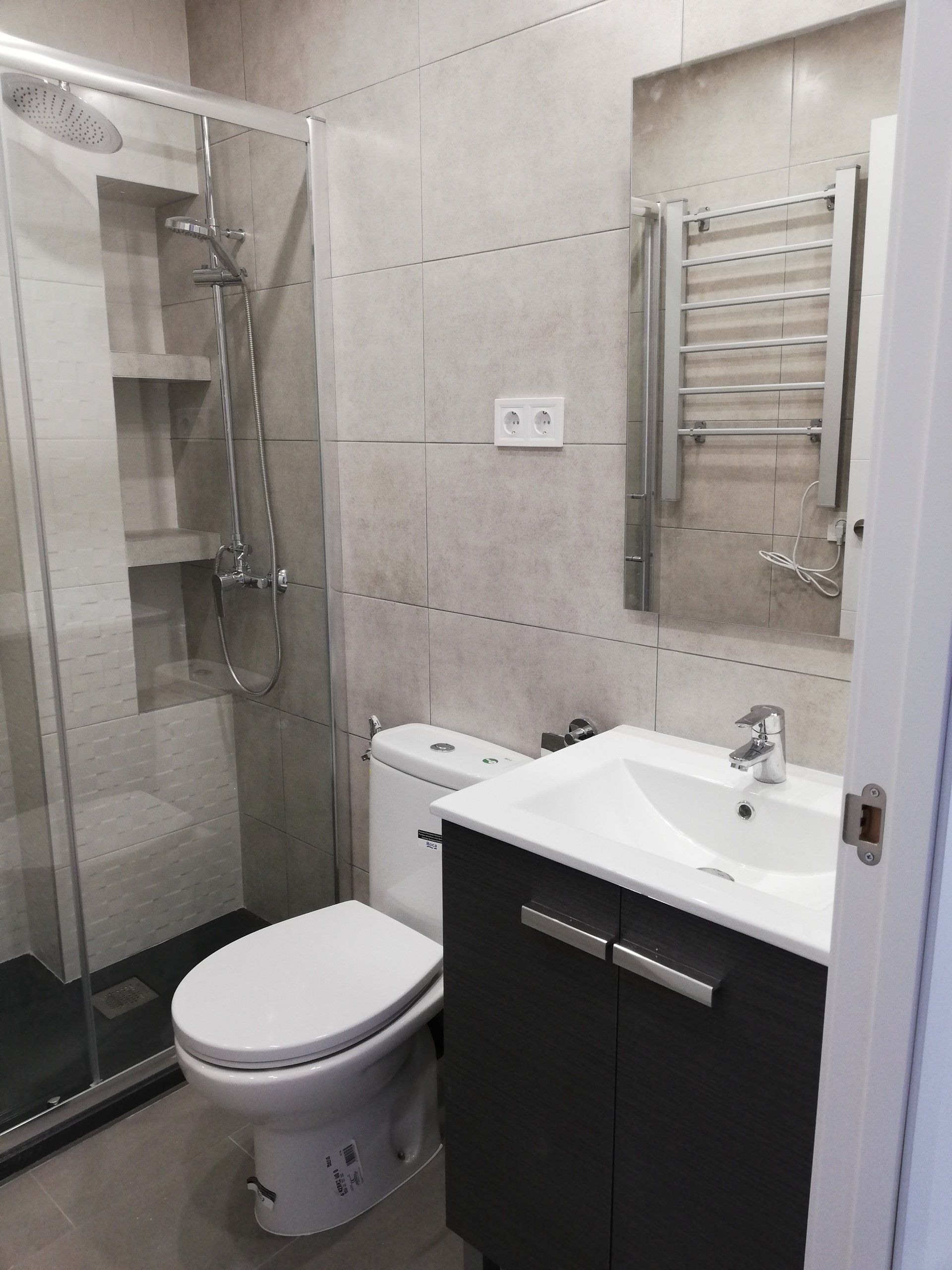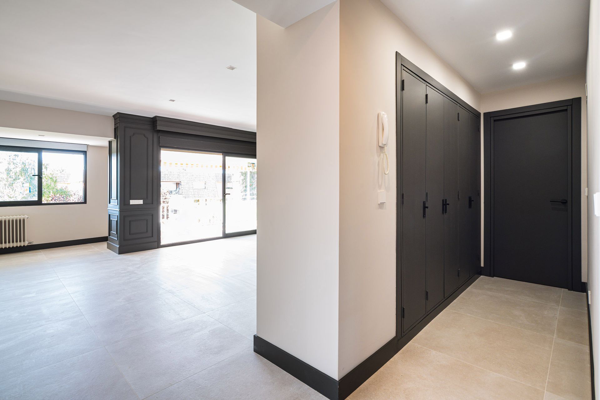 Renovación de instalaciones, cambio de suelo de toda la vivienda levantando el parquét antiguo y colocando un suelo porcelánico de color gris cemento, Instalación de aire acondicionado y cerramientos de PVC.