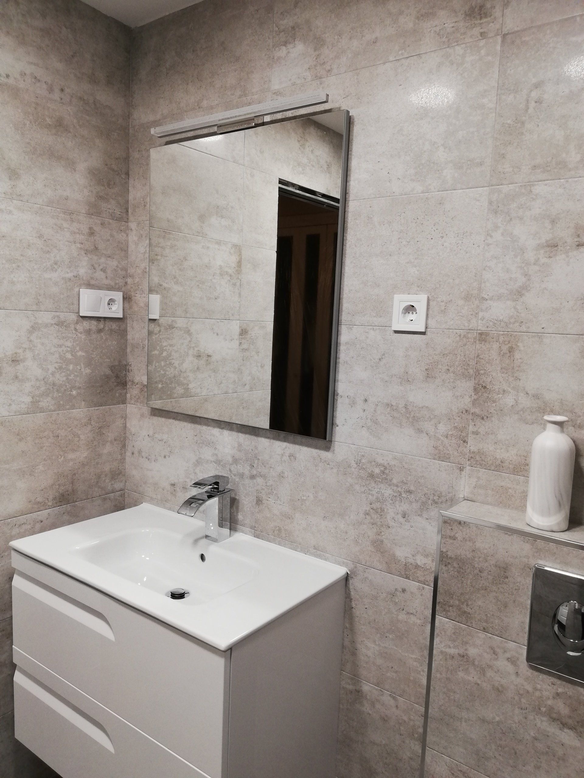 Reforma de cocina y baños sin modificar fontanería. Nuevos puntos de luz y tomas de electricidad, renovación de mecanismos, enchufes e interruptores. Cambio de mobiliario, alicatados y aparatos sanitarios. Acuchillado y barnizado de tarima, cambio de rodapié, cambio de manillas / rosetas de todas las puertas de la vivienda.
